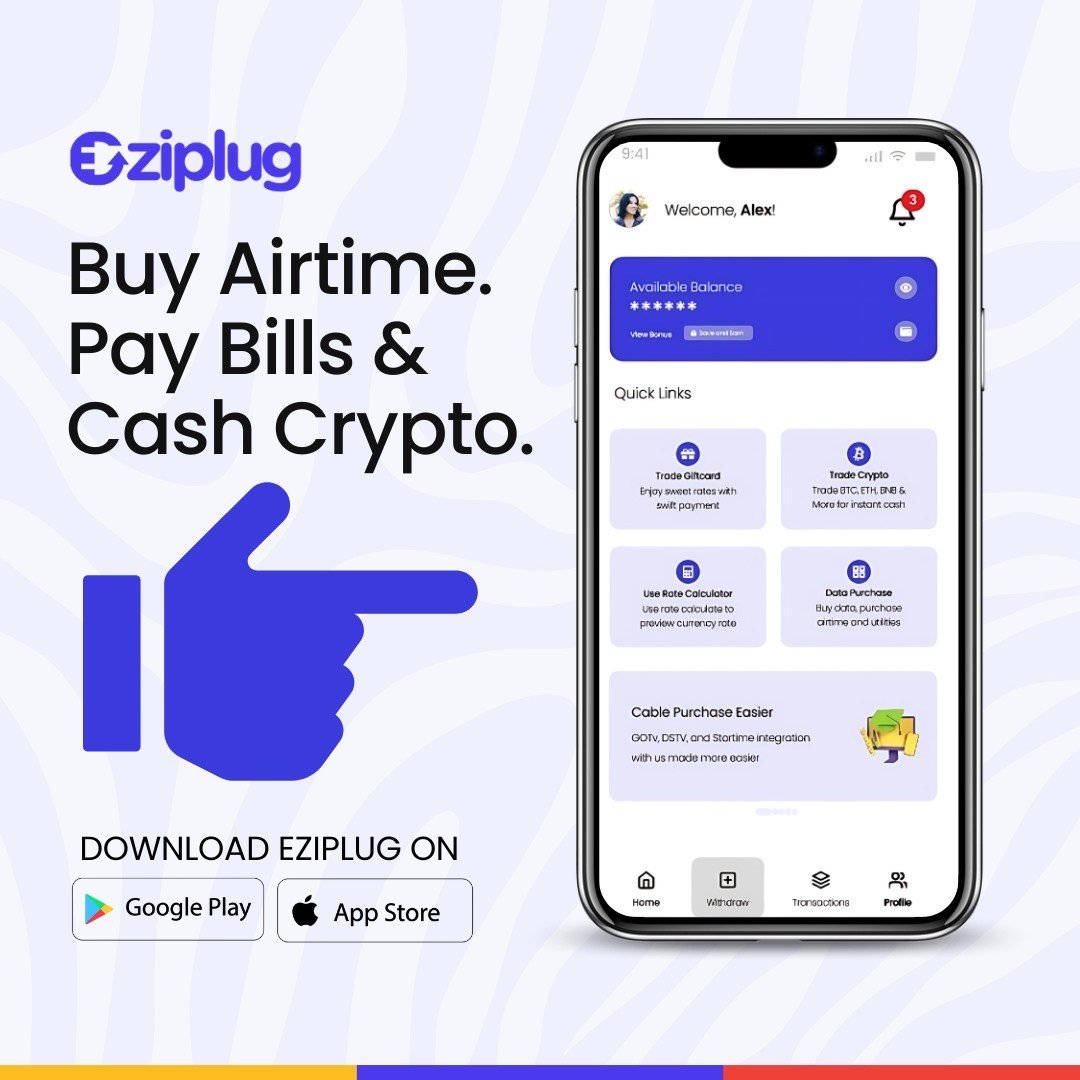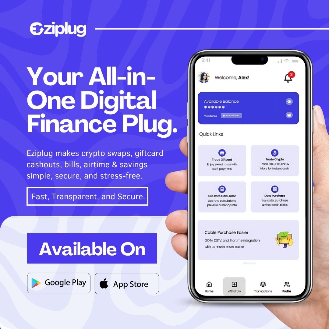 Eziplug is your all-in-one solution for seamless airtime top-ups, data purchases, bill payments, and secure cryptocurrency transactions and Giftcards. Built for ease, speed, and security, Eziplug empowers users to manage digital finances and utilities from one intuitive platform. Whether you're buying crypto or recharging your phone, we make it fast, safe, and stress-free